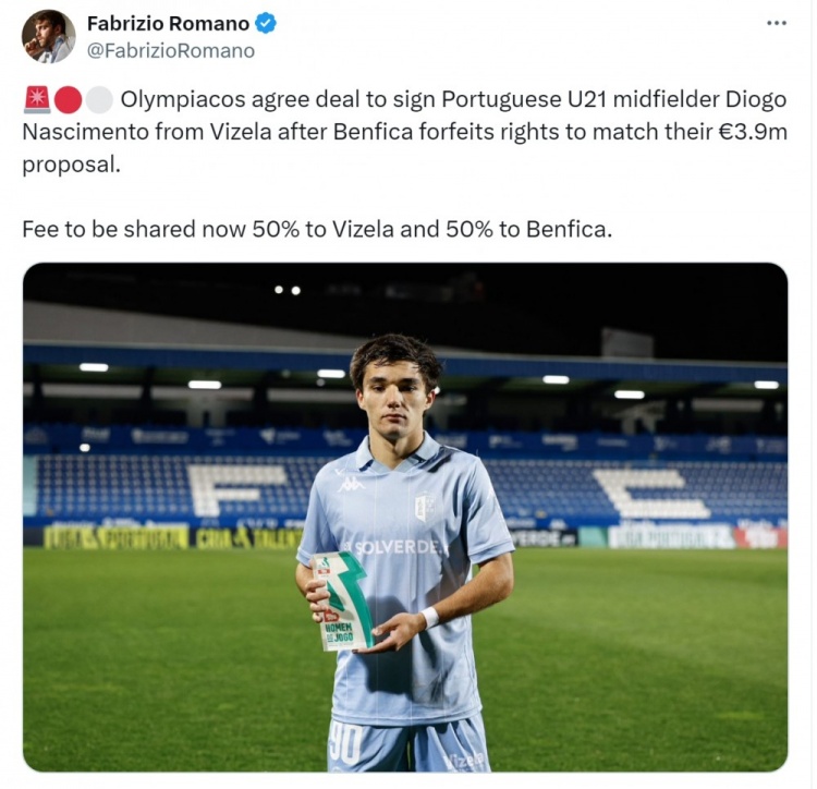 羅馬諾透露,奧林匹亞科斯已經(jīng)就引進(jìn)維澤拉中場(chǎng)納西門(mén)托達成協(xié)議,轉會(huì )費報價(jià)390萬(wàn)歐元,本菲卡放棄了報價(jià)匹配權,維澤拉和本菲卡將各獲得50%轉會(huì )費。