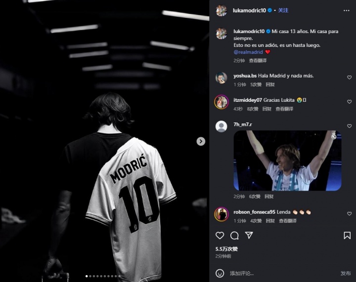 莫德里奇曬出背影照片,配文:13年了,這是我永遠的家。這不是再見(jiàn),這是后會(huì )有期。