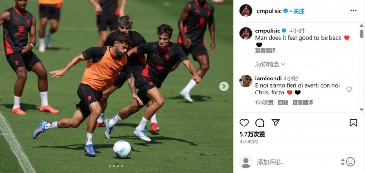 7月13日訊 普利西奇更新了社交媒體,曬出了自己在米蘭訓練中備戰新賽季的照片。