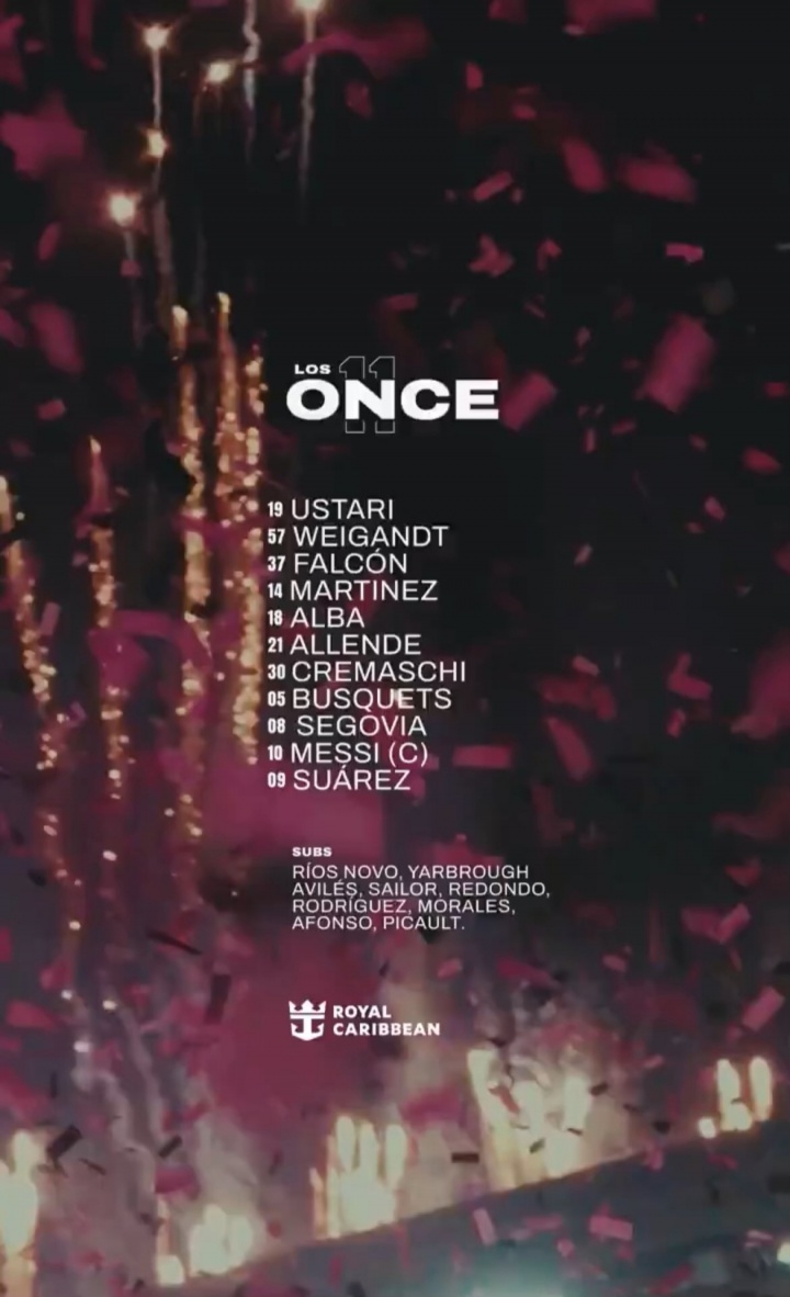 邁阿密?chē)H首發(fā):19-烏斯塔里、57-韋甘特、37-法爾肯、14-赫克托-馬丁內斯、18-阿爾巴、21-阿連德、30-克雷馬斯基、5-布斯克茨、8-特拉斯科、10-梅西、9-蘇亞雷斯