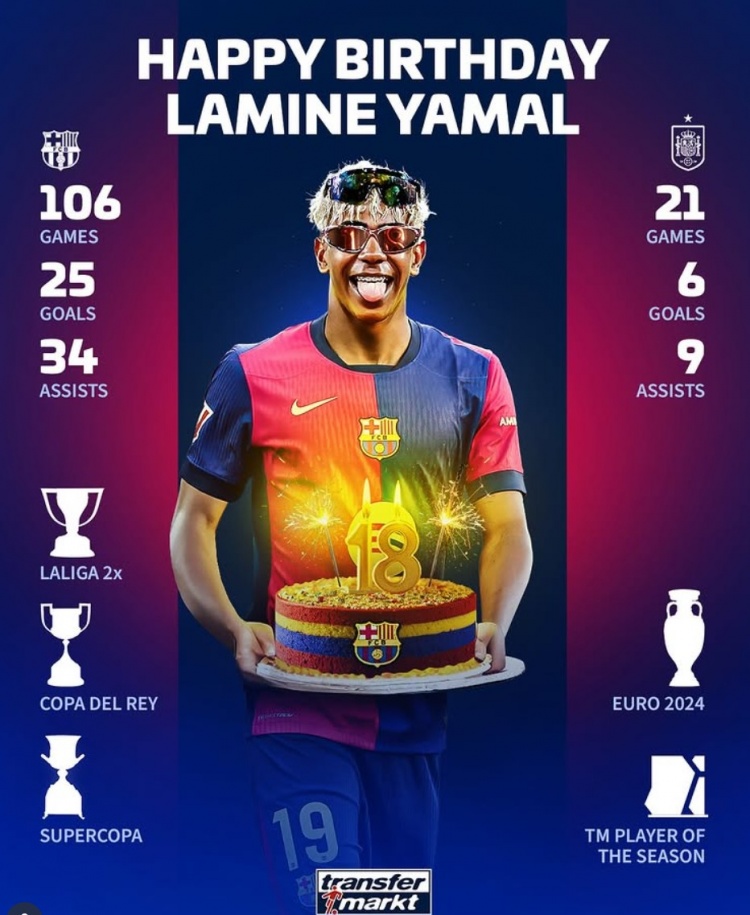 7月13日訊 亞馬爾在今日正式迎來(lái)自己的18歲生日,而放眼世界足壇歷史也少有球員能在剛滿(mǎn)18歲時(shí)就能取得亞馬爾當前的成就。