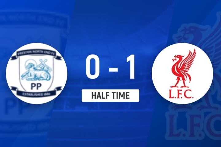 上半場(chǎng)補時(shí)2分鐘,普雷斯頓0-1利物浦。