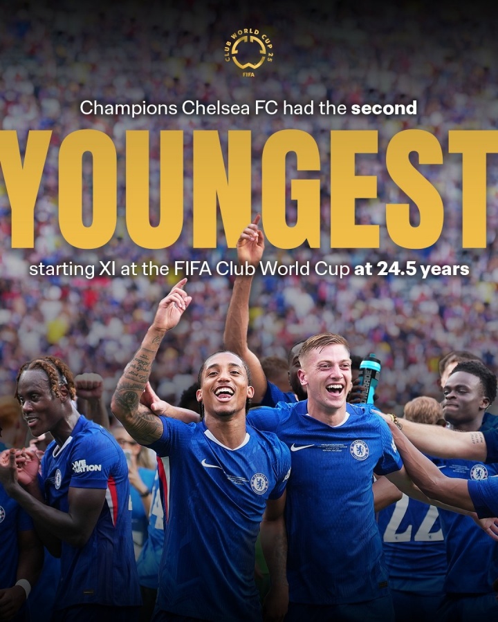 07月14日訊 世俱杯決賽,切爾西3-0擊敗巴黎,捧起了最終的冠軍獎杯。賽后國際足聯(lián)發(fā)布了一系列相關(guān)的統計數據,切爾西在這屆比賽中的首發(fā)平均年齡是第二年輕,僅為24.5歲。