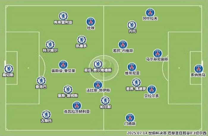 內托“兌子”阿什拉夫,帕爾默內收后讓出右路,引誘門(mén)德斯前插助攻,巴黎的左路成為切爾西的反擊走廊。
