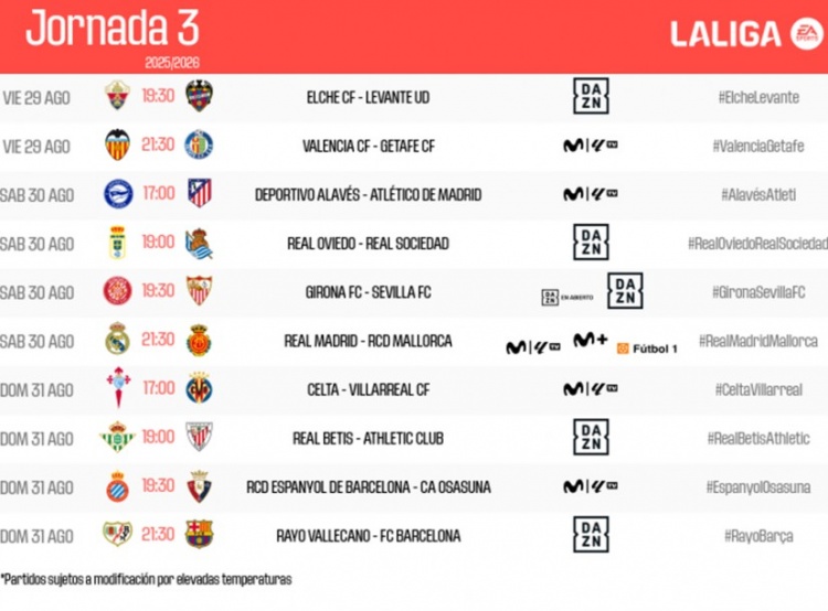 7月14日訊 西甲官方公布新賽季第3輪賽程,皇馬和巴薩均在凌晨3:30出戰。