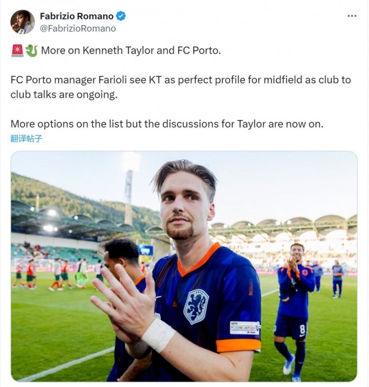 波爾圖中場(chǎng)引援名單中還有更多人選,但目前泰勒的轉會(huì )正在磋商之中。