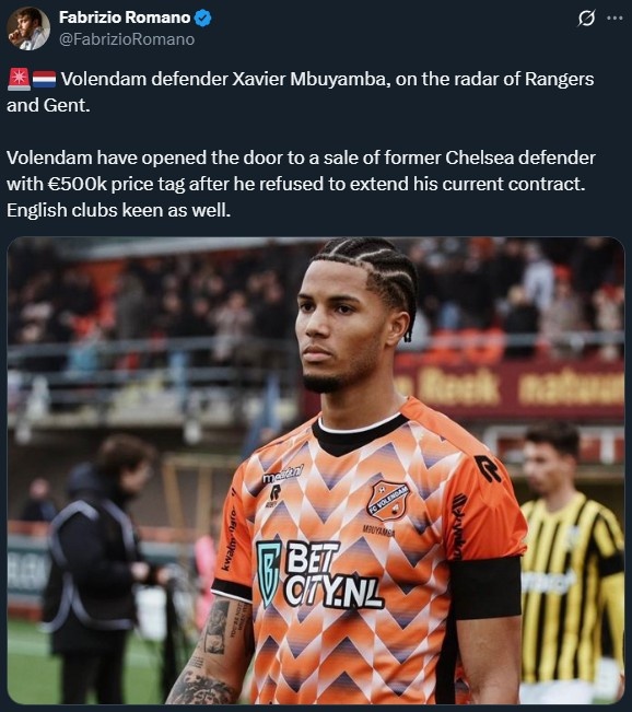 7月15日訊 羅馬諾報道,沃倫丹后衛澤維爾-姆布揚巴正受到格拉斯哥流浪者和根特的關(guān)注。
