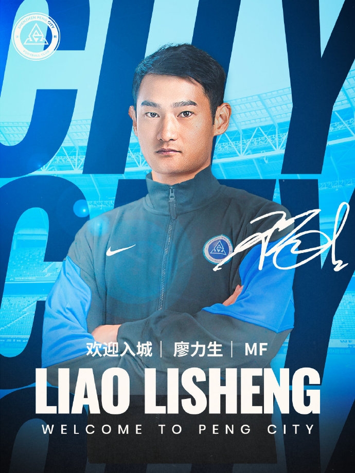 深圳新鵬城足球俱樂(lè )部今日正式宣布,經(jīng)與成都蓉城足球俱樂(lè )部達成一致,球員廖力生以租借形式加盟球隊。