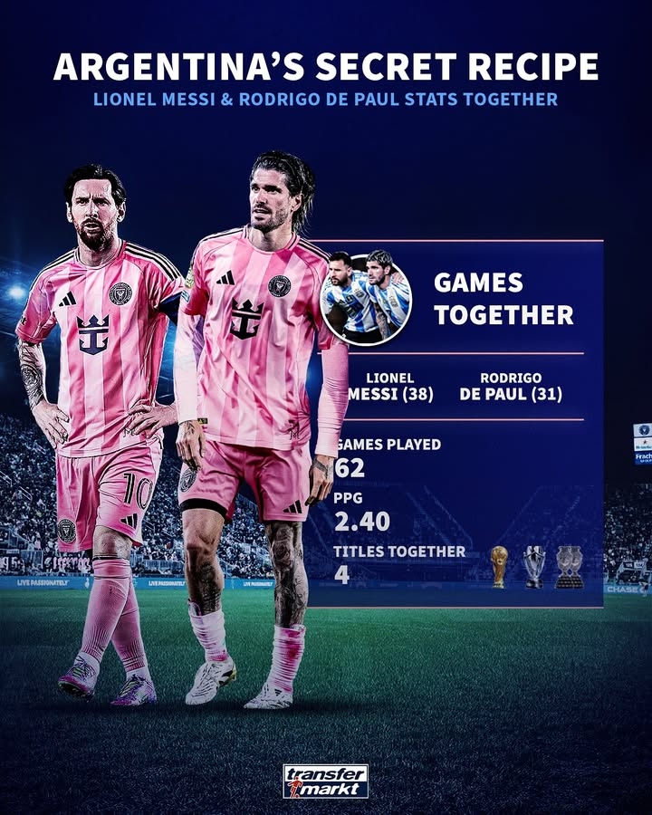 德轉盤(pán)點(diǎn)了梅西與德保羅并肩作戰的數據: