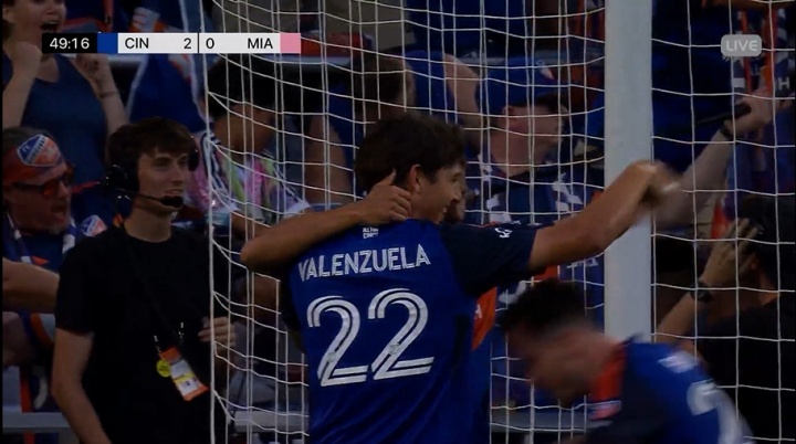 07月17日訊 美職聯(lián)邁阿密?chē)H客戰辛辛那提FC。比賽第49分鐘,邁阿密?chē)H客場(chǎng)0-2落后,埃萬(wàn)德為辛辛那提破門(mén)。