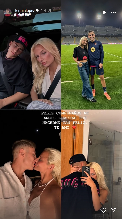 04月15日訊 今天巴薩中場(chǎng)費爾明在社媒上祝女友生日快樂(lè ),他寫(xiě)道:親愛(ài)的,生日快樂(lè ),感謝你讓我如此幸福,我愛(ài)你!