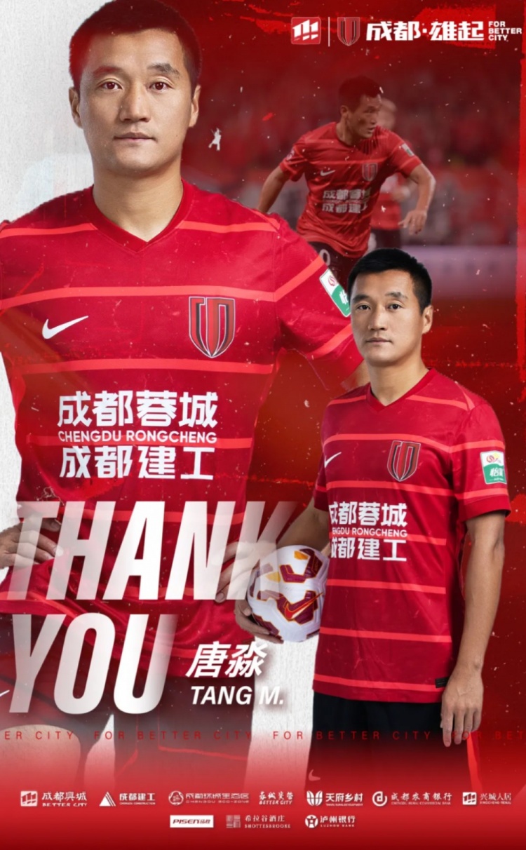 2023年,唐淼轉會(huì )至成都蓉城,在效力的3個(gè)賽季中,各項賽事累計出場(chǎng)54次,貢獻了2粒進(jìn)球和8次助攻。