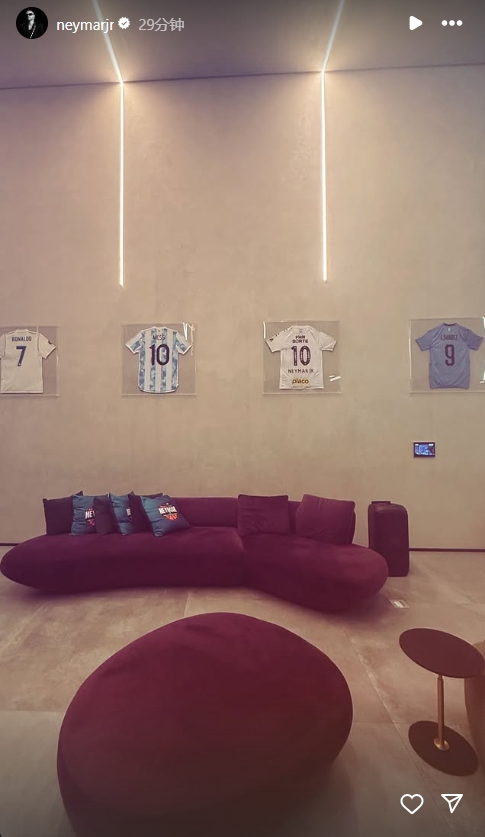 內馬爾社媒曬球衣收藏:皇馬C羅、阿根廷梅西、桑托斯內馬爾、烏拉圭蘇亞雷斯