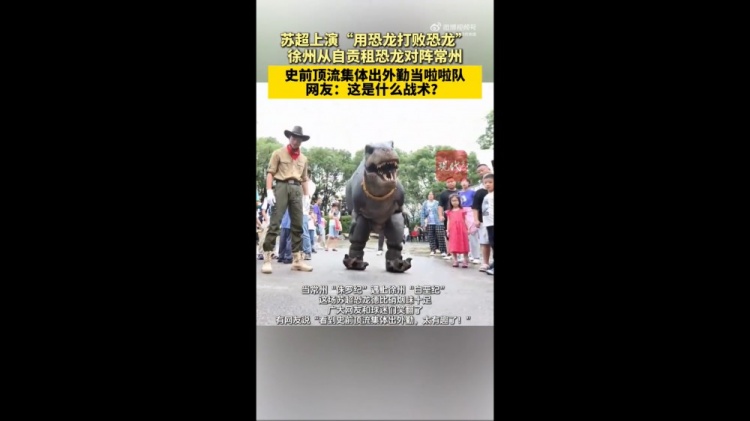 徐州隊冠名商宣布從恐龍之鄉四川自貢租來(lái)5只恐龍,組成“史前啦啦隊”,強勢應援徐州隊。同時(shí),常州將派出恐龍大明星角角、犟犟作為“足球寶貝”,為常州隊應援打call。