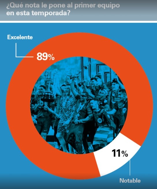 巴薩在四項可能的冠軍中奪得三個(gè):西甲聯(lián)賽、國王杯和西超杯,這為巴薩贏(yíng)得了優(yōu)秀的評分。在歐冠半決賽被國米淘汰,幾乎沒(méi)有影響。由《世界體育報》的調查顯示,89%的會(huì )員認為球隊的工作是優(yōu)秀的。少數人,11%,則給出了良好的評價(jià)。