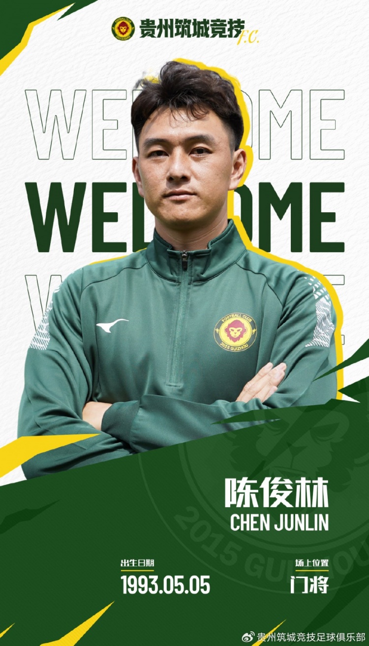 歡迎陳俊林加入貴州筑城競技大家庭,讓我們一起凝心聚力,一起為貴州而戰!