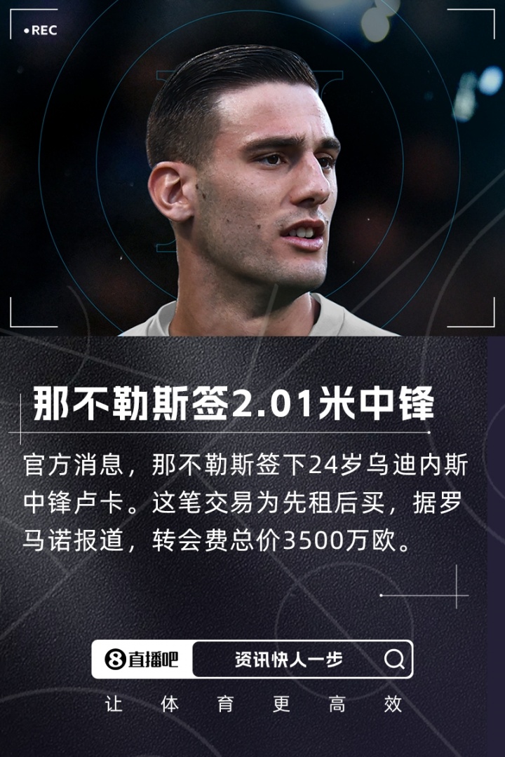 07月18日訊 官方消息,那不勒斯簽下身高2.01米的烏迪內斯中鋒盧卡,先租后買(mǎi)總價(jià)3500萬(wàn)歐。