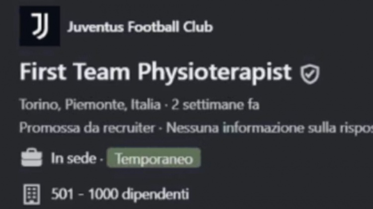但這還不是全部。在這個(gè)轉會(huì )市場(chǎng)火熱進(jìn)行的時(shí)期,尤文還將目光投向了“理療師市場(chǎng)”,尤文通過(guò)領(lǐng)英平臺進(jìn)行招聘。