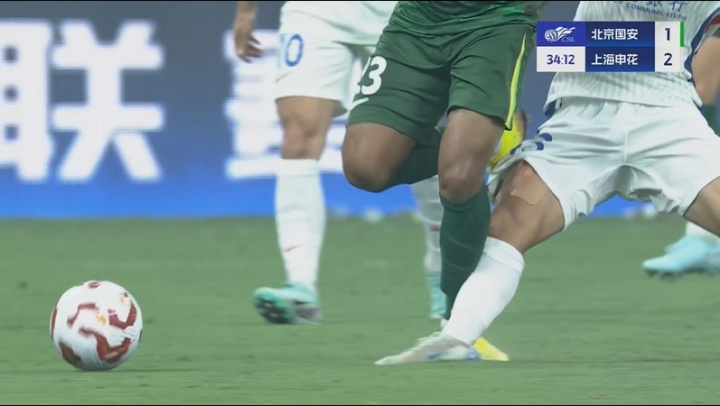 07月19日訊 中超第17輪,北京國安vs上海申花比賽第35分鐘,楊皓宇伸腳絆達萬(wàn)&后者隨后倒地,馬寧向楊皓宇出示黃牌。