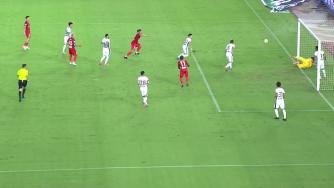 第70分鐘,納薩里奧任意球攻門(mén)頗具威脅,郭全博不敢怠慢將球撲出?!?/p>