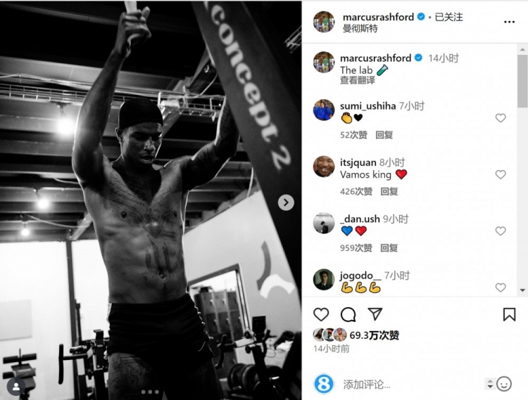 拉什福德在社交媒體上曬出健身房?jì)扔柧毜恼掌?,這位英格蘭前鋒正在為新賽季做準備。