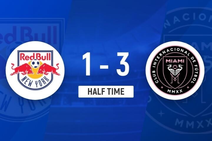 傷停補時(shí)5分鐘。上半場(chǎng)比賽結束,紐約紅牛1-3邁阿密?chē)H。