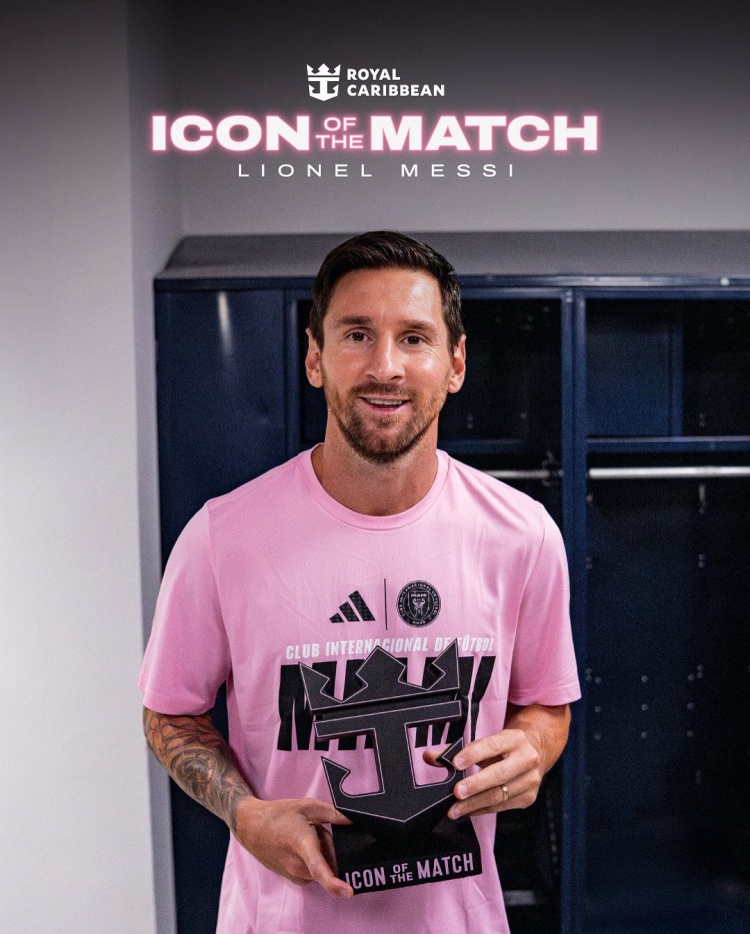 此役梅西2球1助,并策動(dòng)一粒進(jìn)球,幫助邁阿密?chē)H取勝,他當選本場(chǎng)比賽最佳球員。