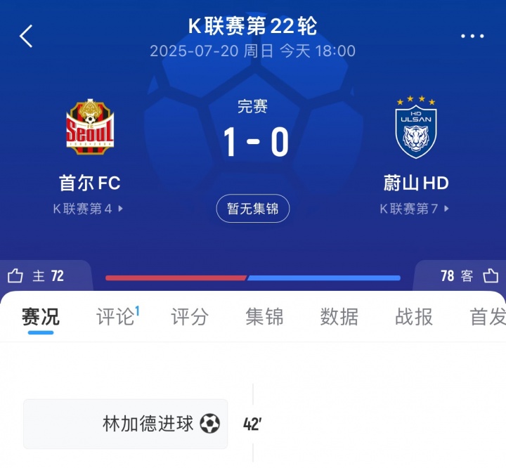 07月20日訊 在剛剛結束的K聯(lián)賽第22輪比賽中,首爾FC1-0蔚山HD,林加德在比賽中轟入一記精彩的世界波,打入全場(chǎng)唯一進(jìn)球幫助球隊取勝。