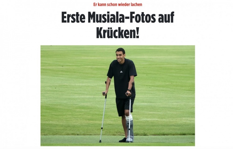 穆西亞拉的觀(guān)戰并未給拜仁世界隊帶來(lái)好運,他們以2-2與維也納快速戰平。在之后大約10分鐘,穆西亞拉就拄著(zhù)拐杖蹣跚地穿過(guò)主訓練場(chǎng)回到職業(yè)球員大樓。