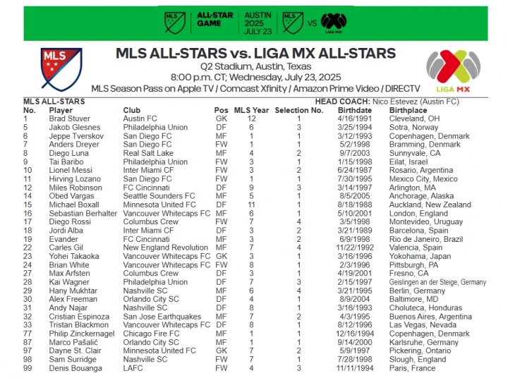 07月23日訊 北京時(shí)間7月24日9點(diǎn),美職聯(lián)全明星將對陣墨西哥聯(lián)賽全明星隊。