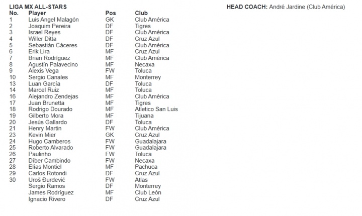 墨西哥全明星名單中,J羅和拉莫斯入選,但未公布號碼。