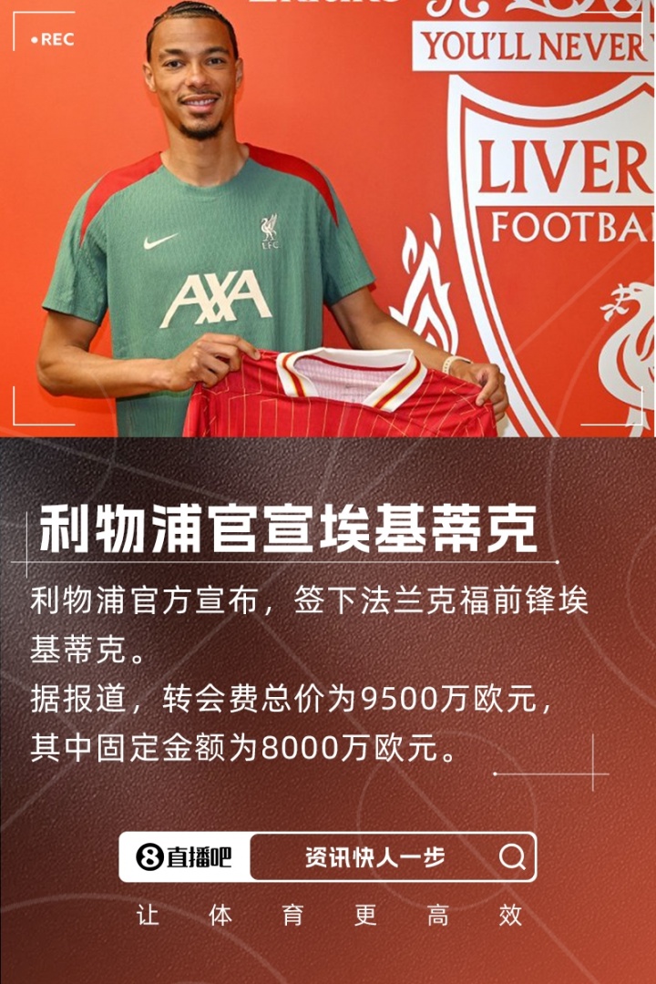 此前利物浦已經(jīng)官宣簽下了維爾茨、弗林蓬、科爾克茲等多名球員,今夏支出已經(jīng)接近3億英鎊。
