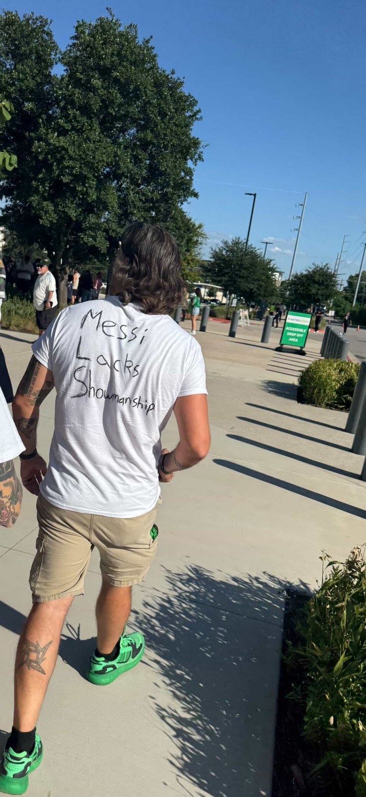 據記者Favian Renkel報道,奧斯汀的一些球迷對梅西缺席全明星賽感到不滿(mǎn),有球迷在衣服后面寫(xiě)著(zhù):“梅西缺乏表演天賦?!?/p>
