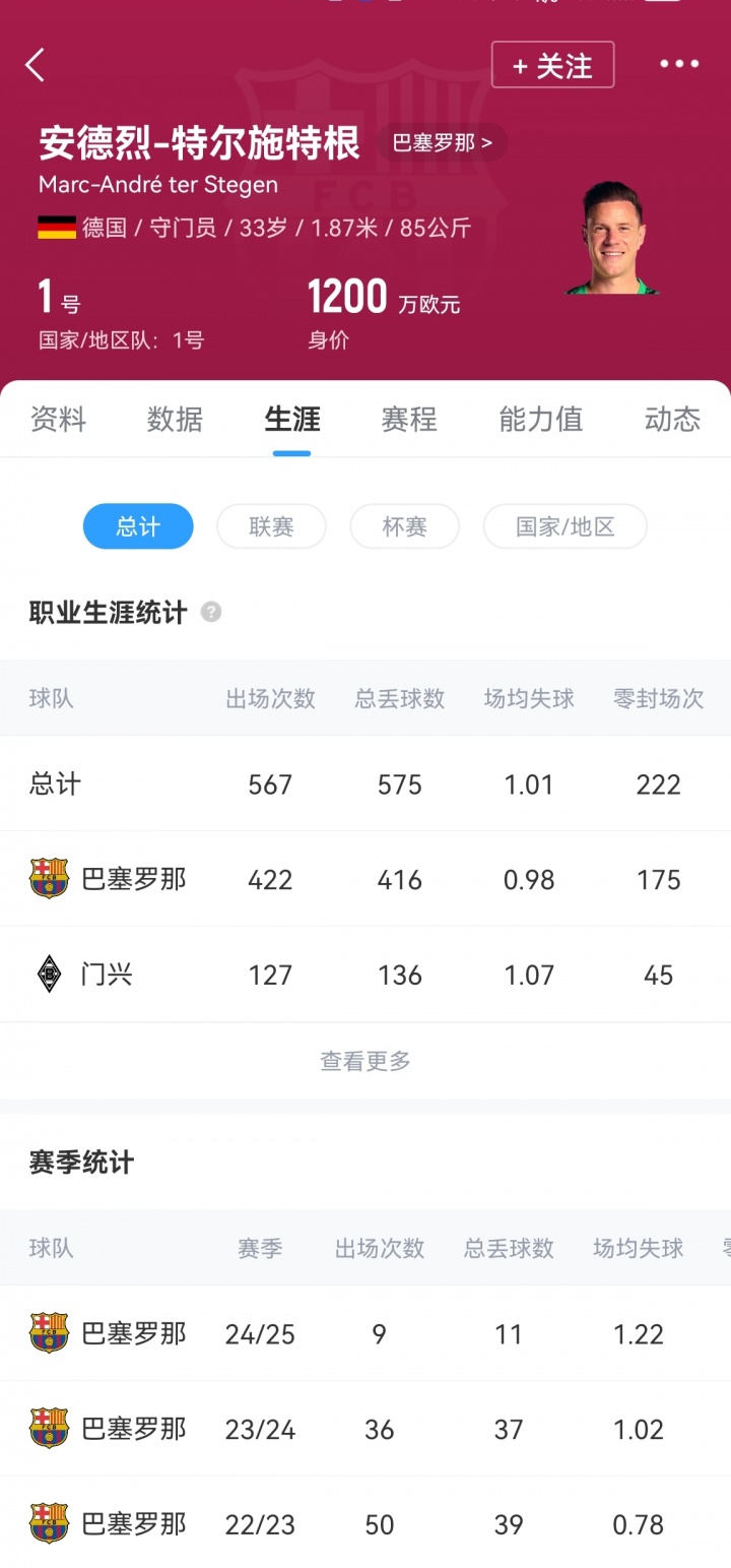 2023年12月,特爾施特根因腰椎傷勢,在法國接受了專(zhuān)家組的背部手術(shù),但背部問(wèn)題仍一直困擾著(zhù)特爾施特根。