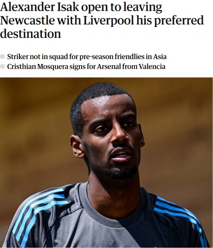 據悉,伊薩克將利物浦視為自己轉會(huì )的首選目的地。他已拒絕隨紐卡參加季前賽,考慮其他選項。