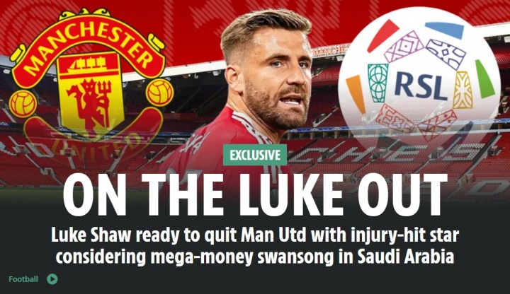 英媒《太陽(yáng)報》今日發(fā)布獨家新聞,稱(chēng)30歲的盧克-肖考慮冬窗離開(kāi)曼聯(lián),前往沙特淘金。