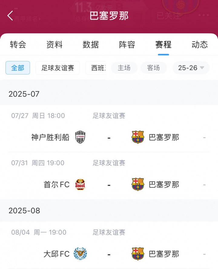 巡回賽日本站結束后,球隊將前往韓國,繼續進(jìn)行與首爾FC(7月31日)和大邱FC(8月4日)的兩場(chǎng)比賽。