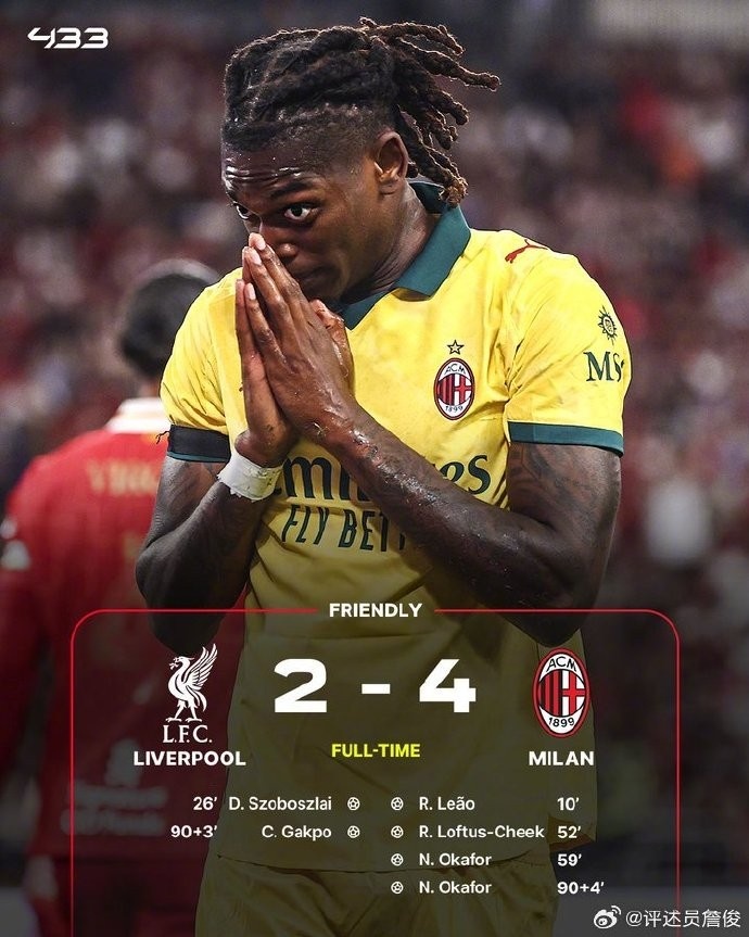 7月26日訊 季前友誼賽,利物浦2-4不敵AC米蘭。