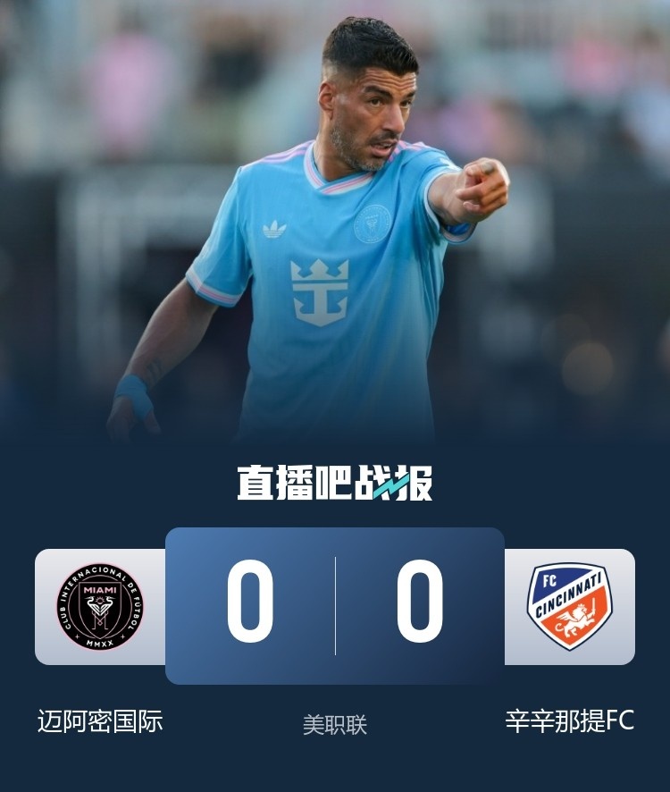 傷停補時(shí)2分鐘。全場(chǎng)比賽結束,邁阿密?chē)H0-0辛辛那提FC。