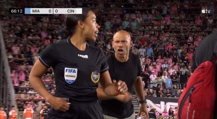 第66分鐘,蘇亞雷斯傳給法法-皮考特,法法-皮考特進(jìn)入禁區后倒地。主裁沒(méi)表示,邁阿密?chē)H主帥馬斯切拉諾非常不滿(mǎn)。