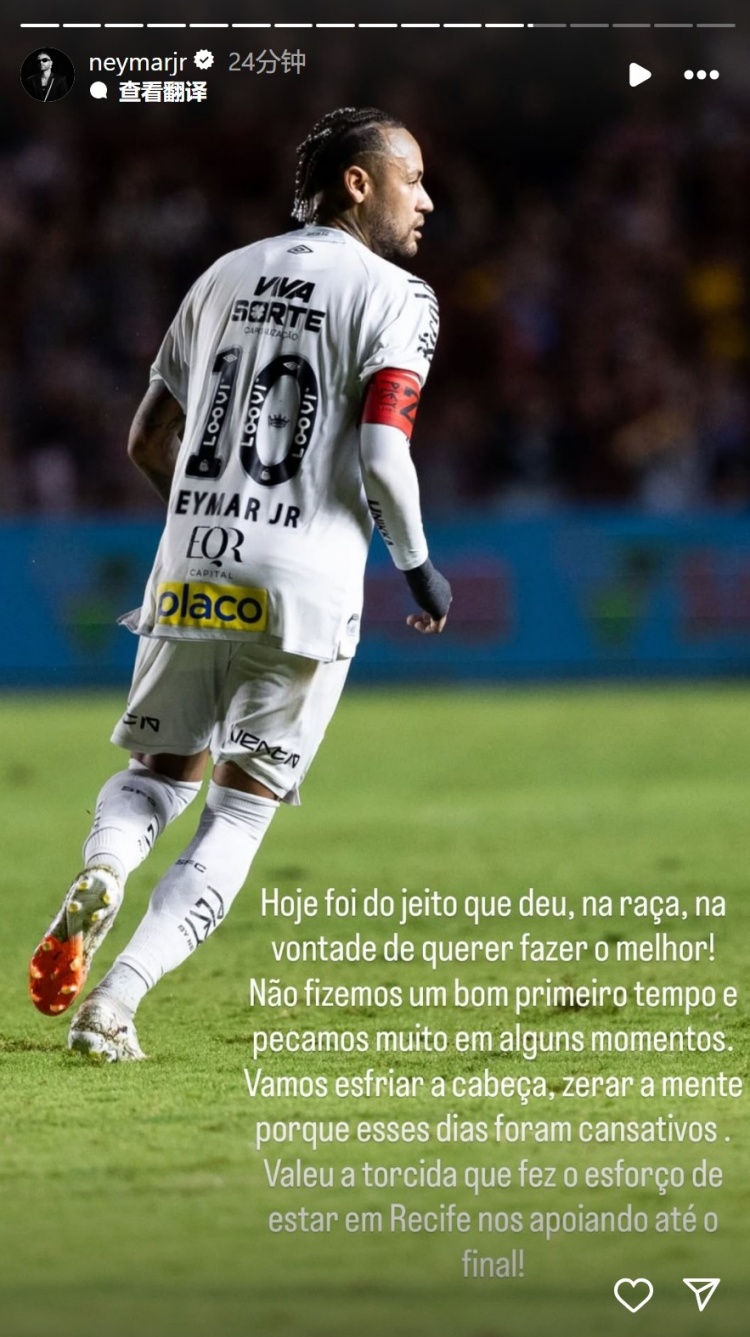 內馬爾社媒曬出比賽照片,配文:“今天就是這樣,我們靠的是拼搏精神和想做到最好的決心!”