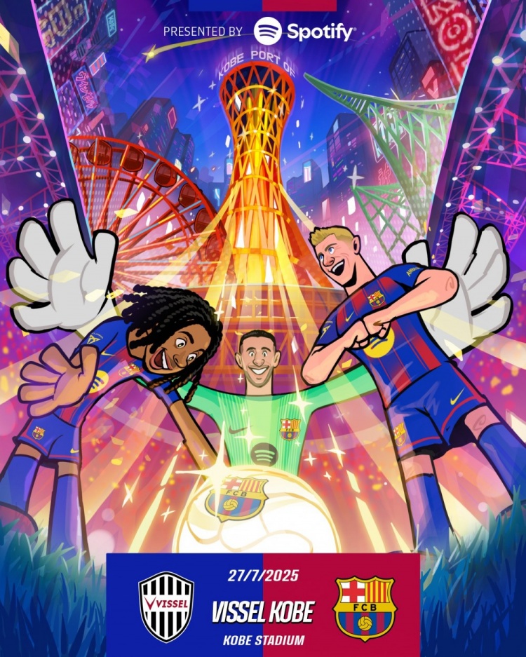 巴薩官推曬卡通海報預熱神戶(hù)友誼賽:2025-26賽季現在開(kāi)始!