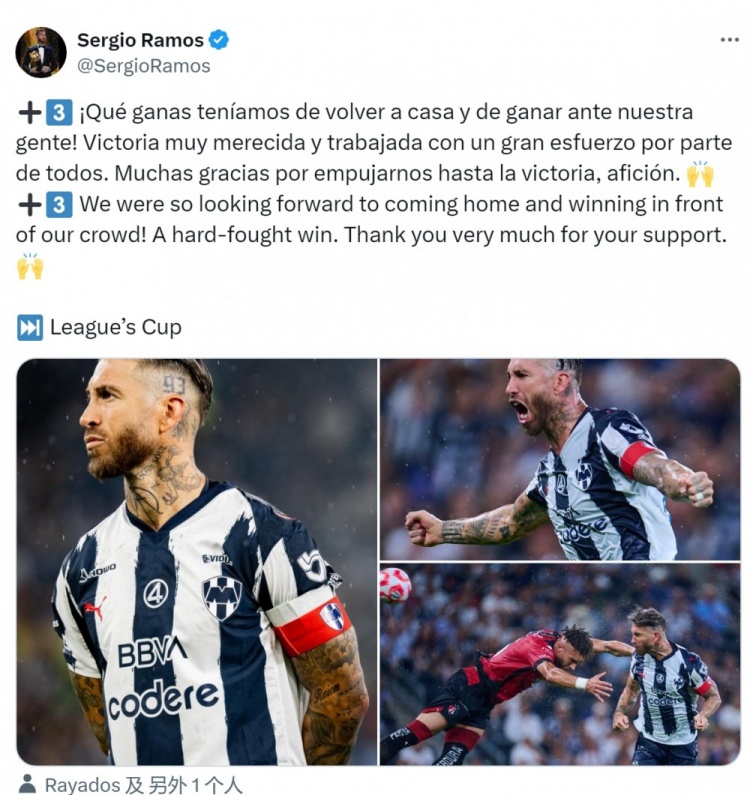 拉莫斯社媒曬出比賽照片,并寫(xiě)道:“全取三分!我們非常期待回到主場(chǎng),在我們的球迷面前取得勝利!”