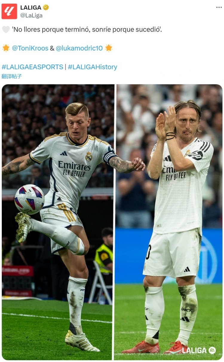 7月27日訊 西甲官方更新社媒動(dòng)態(tài),致敬克羅斯和莫德里奇。