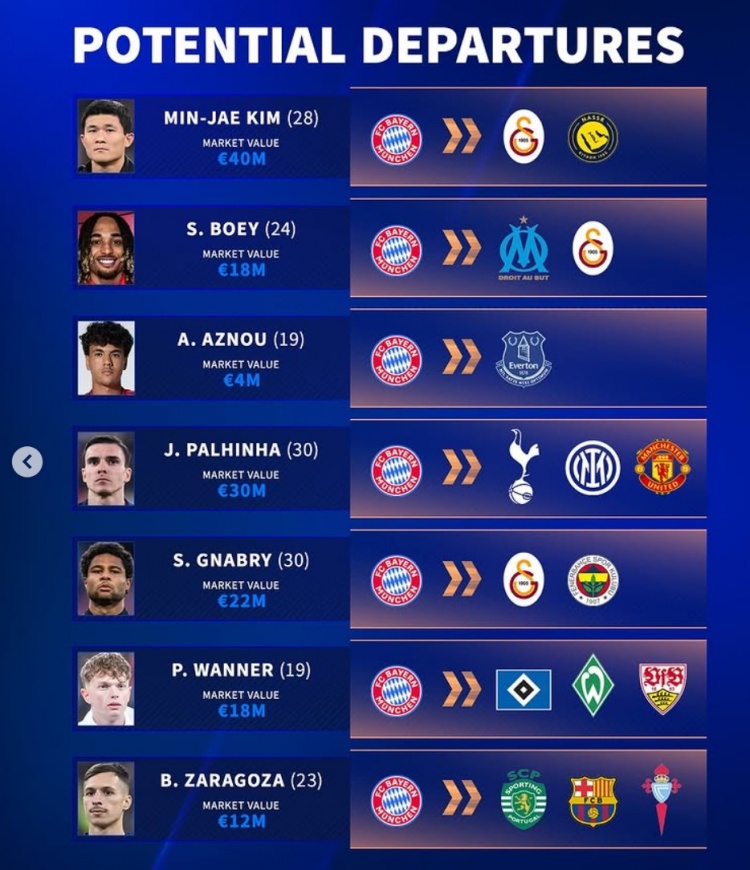 7月27日訊 拜仁在今夏轉會(huì )市場(chǎng)四處碰壁,而他們的陣容還可能進(jìn)一步縮減,《轉會(huì )市場(chǎng)》便列出了拜仁的7名潛在離隊人員及其可能下家。