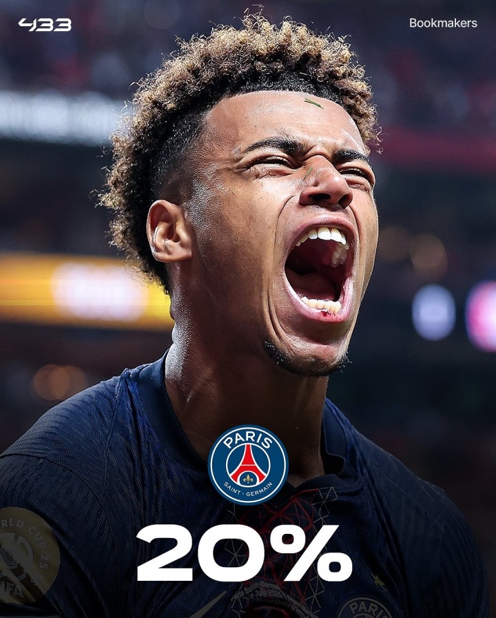 07月27日訊 外媒433根據相關(guān)機構賠率,列出了新賽季歐冠奪冠概率前5,巴黎以20%奪冠概率領(lǐng)跑,利物浦17%緊隨其后,西甲雙雄巴薩、皇馬均為14%,阿森納12%。