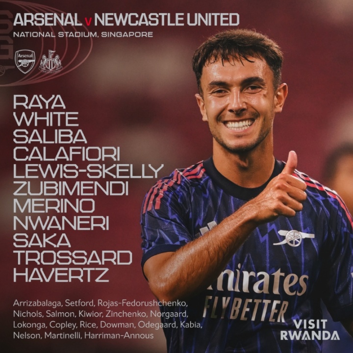 阿森納首發(fā):拉亞、懷特、薩利巴、卡拉菲奧里、斯凱利、祖比門(mén)迪、梅里諾、恩瓦內里、薩卡、特羅薩德、哈弗茨