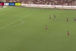 第42分鐘,庫巴西后場(chǎng)帶球被斷,神戶(hù)反擊第一下打門(mén)被撲,隨后宮代大圣點(diǎn)球點(diǎn)附近得球轉身低射扳平比分,神戶(hù)勝利船1-1巴塞羅那?!?/strong>