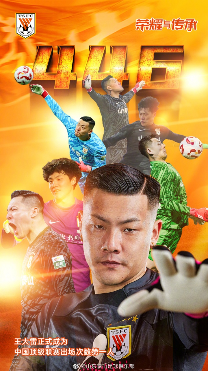 祝賀王大雷正式成為中國頂級聯(lián)賽出場(chǎng)次數第一人!