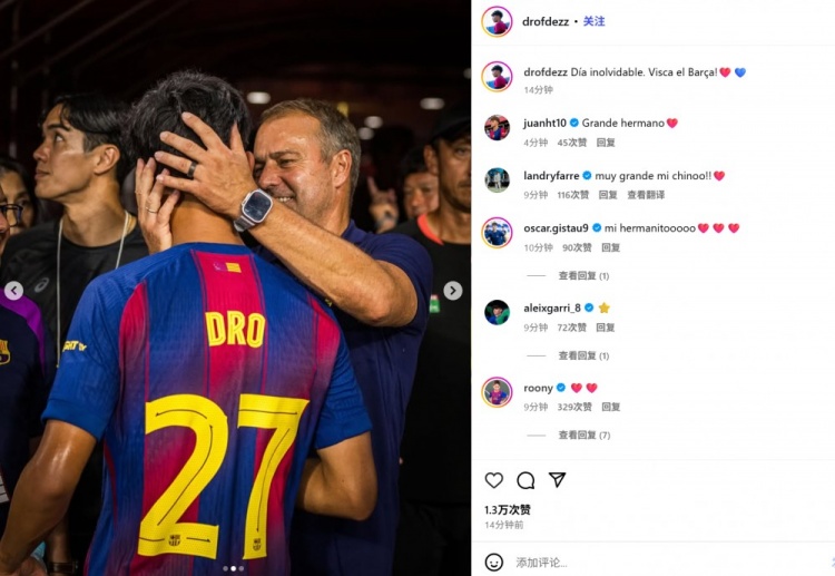 這位小將也通過(guò)社媒曬出同主帥弗里克互動(dòng)的照片,并配文:“難忘的一天!巴薩萬(wàn)歲!”